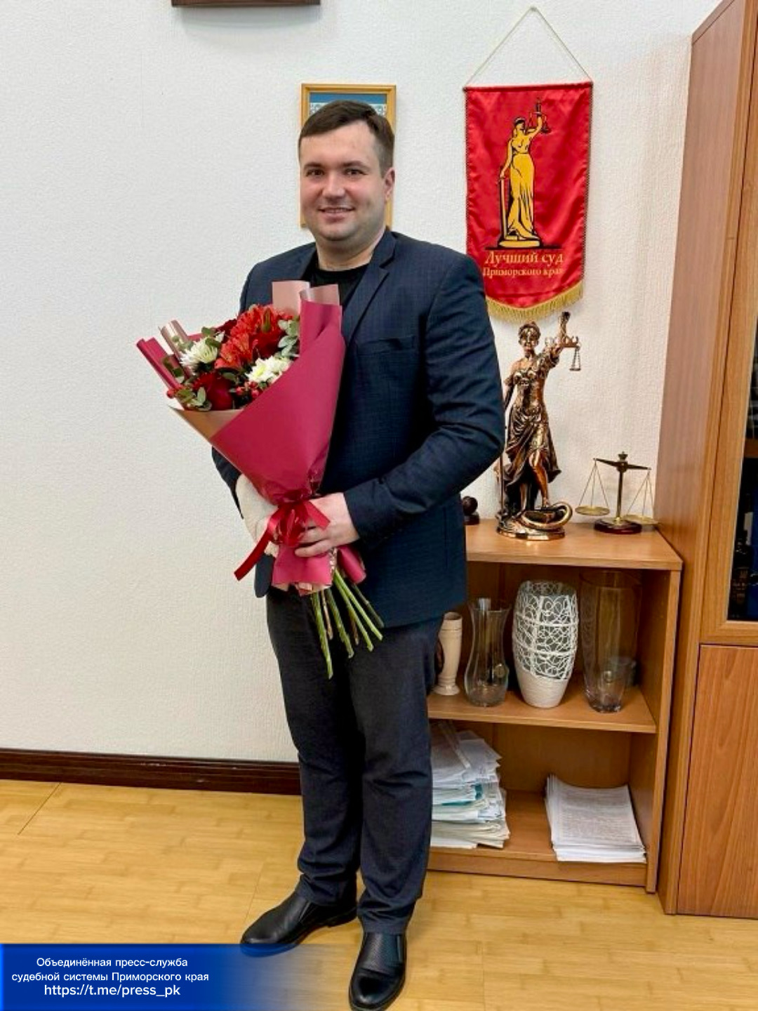 Указом Президента Российской Федерации от 08.12.2025 № 904 судьей Ленинского районного суда г.Владивостока назначен Корсаков Дмитрий Игоревич. В торжественной обстановке он был представлен коллективу суда. Ранее Дмитрий Игоревич с 2022 г. по 2026 г. замещал должность судьи Уссурийского районного суда. До назначения на должность судьи 9 лет работал в органах прокуратуры Приморского края. Председатель, заместители председателя и судьи Ленинского районного суда г. Владивостока поприветствовали нового коллегу. Председатель суда Юлбарисова С.А. пожелала Корсакову Д.И. крепкого здоровья и дальнейших успехов работе.
