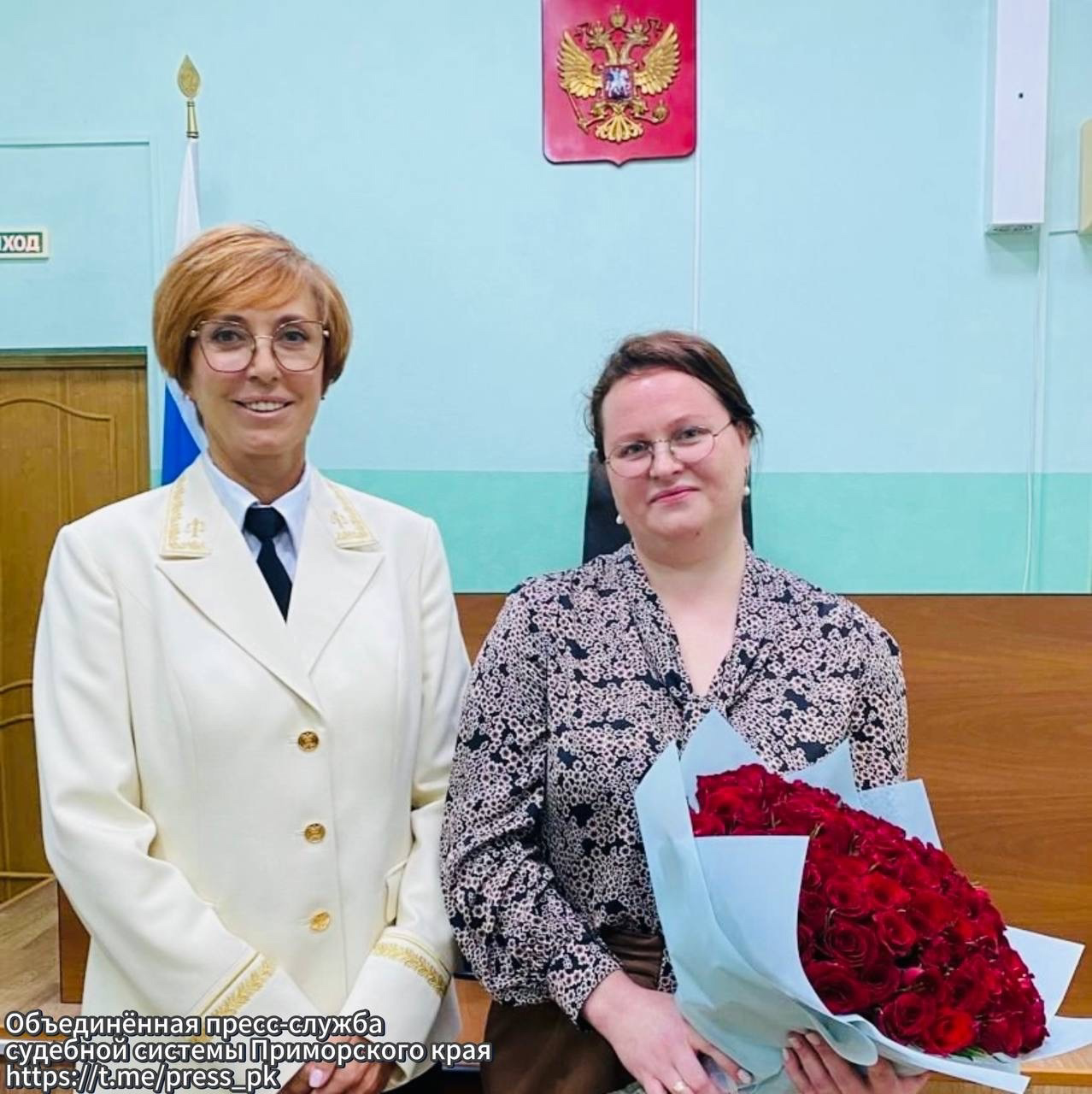 Указом Президента Российской Федерации № 565 от 16.08.2025 на должность председателя Михайловского районного суда назначена Казакова Дарья Александровна, которая начинала трудовую деятельность в 2011 году в должности секретаря судебного заседания Фрунзенского районного суда г. Владивостока, с 2012 года замещала должности следователя и старшего следователя Хорольского межрайонного СО СУ Следственного комитета Российской Федерации по Приморскому краю, с 2017 года - помощника судьи в Черниговском районном суде и Уссурийском районном суде, в 2020 году была назначена судьей Михайловского районного суда. Заместитель председателя Приморского краевого суда Наталья Александровна Деревягина, руководители государственных ведомств и местного самоуправления Михайловского муниципального округа, судьи и сотрудники аппарата суда в торжественной обстановке поздравили Дарью Александровну со вступлением в должность, пожелав дальнейших успехов в служении правосудию. Приморский краевой суд ВКОНТАКТЕ: https://vk.com/press_pk Telegram-канал "Объединенная пресс-служба судебной системы Приморского края”: https://t.me/press_pk |
